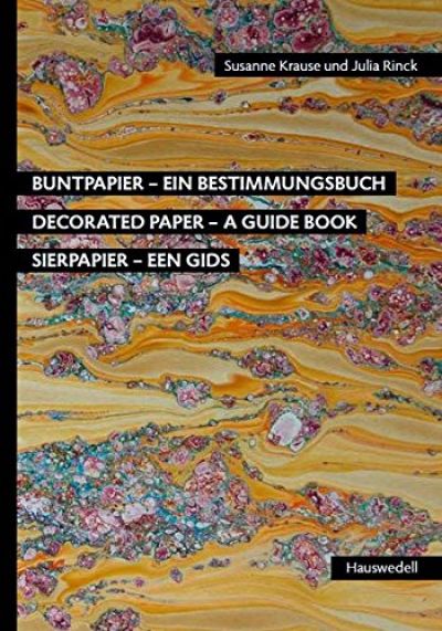Susanne Krause und Julia Rinck: Buntpapier – Ein Bestimmungsbuch / Decorated Paper – A Guide Book / Sierpapier – Een gids. 295 Seiten, 182 Farbabbildungen, Fadenheftung, fester Einband, ca. 15 x 21 cm, 720 Gramm. € 129,-